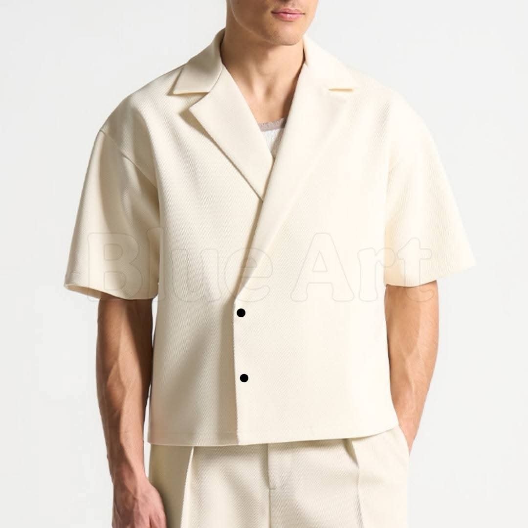 Crafted from premium cotton, this shirt blends sharp with effortless comfort. Featuring a tailored boxy fit, concealed double-breasted closure, and a versatile open neckline, it’s perfect for both smart and casual looks.
