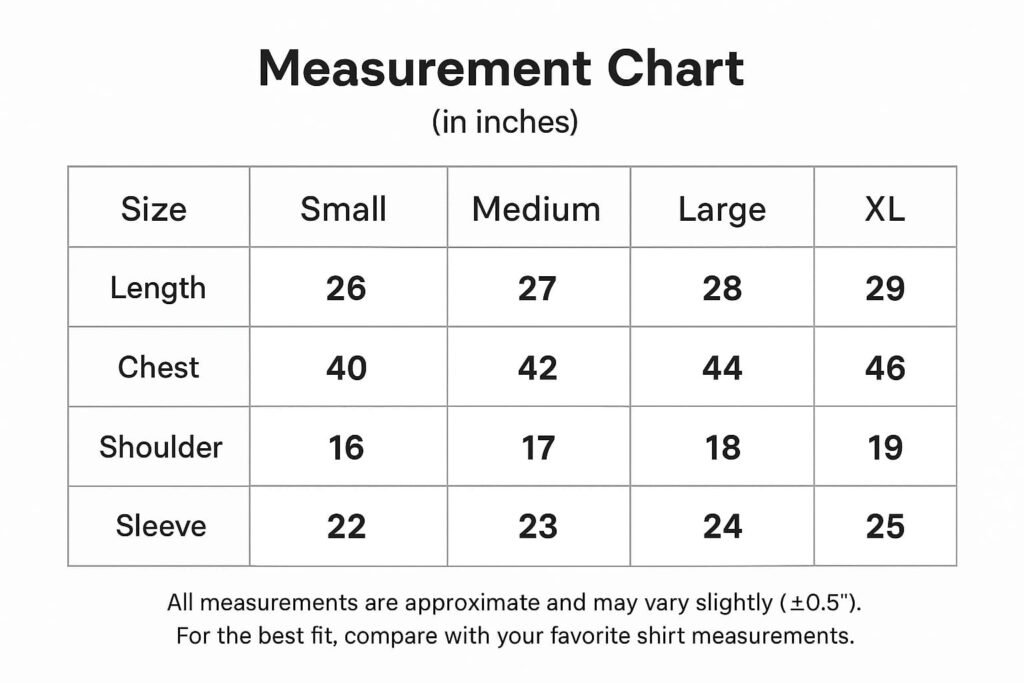 Minimalist Casual Shirt Size Guide